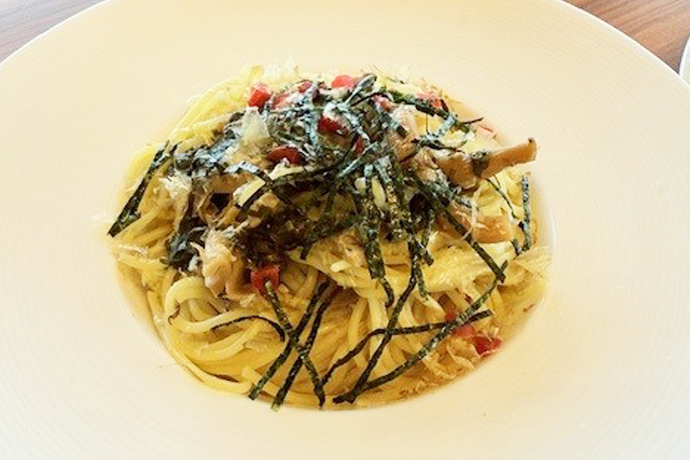 海の恵み「佐渡ナガモ(アカモク)」をたっぷり使用した、ヘルシーで風味豊かな和風パスタです。ナガモ特有の粘りとシャキシャキとした食感が、パスタに絶妙に絡み、ひと口ごとに磯の香りが広がります。